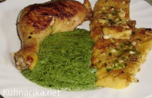 Hrustljava piščančja cezarjeva solata s polento