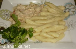 Polnozrnati peresniki z omako iz bučk, čebule in mandljev