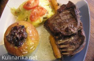 Petya, svinjska ribica je tokrat napolnjena z gobicami, blitvo in mocarelo, pa nekaj začimb, namazana z gorčico in zavita v pršut, pečena v foliji.