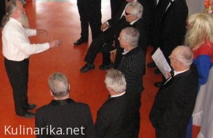 Četrti pevec z leve nam je zapel nekaj solo vložkov, ima 96 let in je član zbora od leta 1933. ![]()
