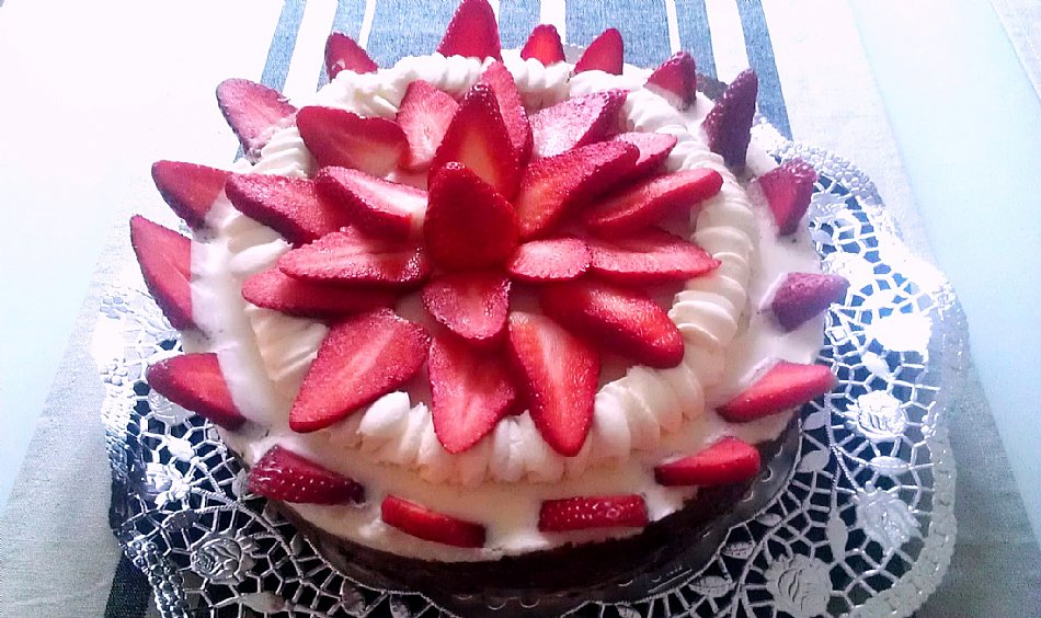 Torta s temnim čokoladnim moussom, jagodami in kokosom