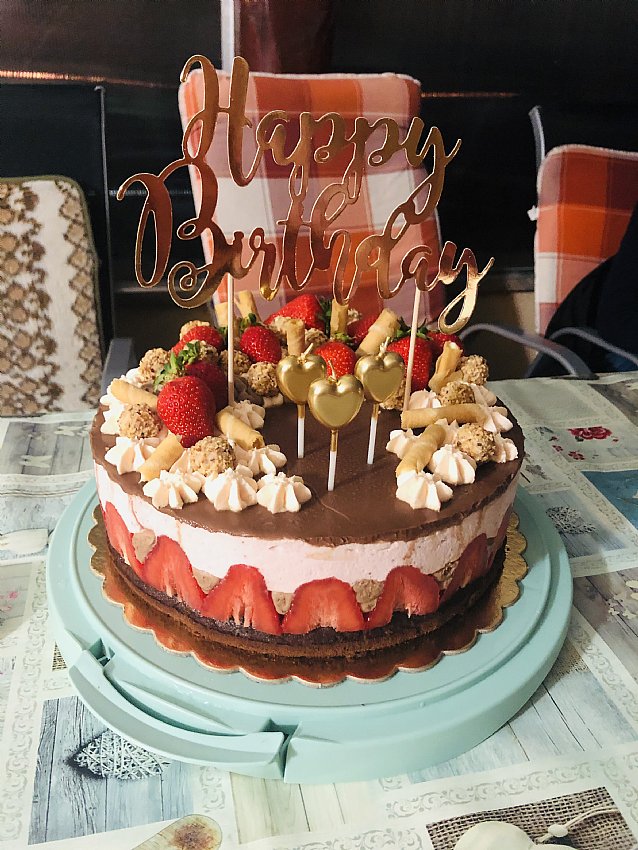 Torta s temnim čokoladnim moussom, jagodami in kokosom