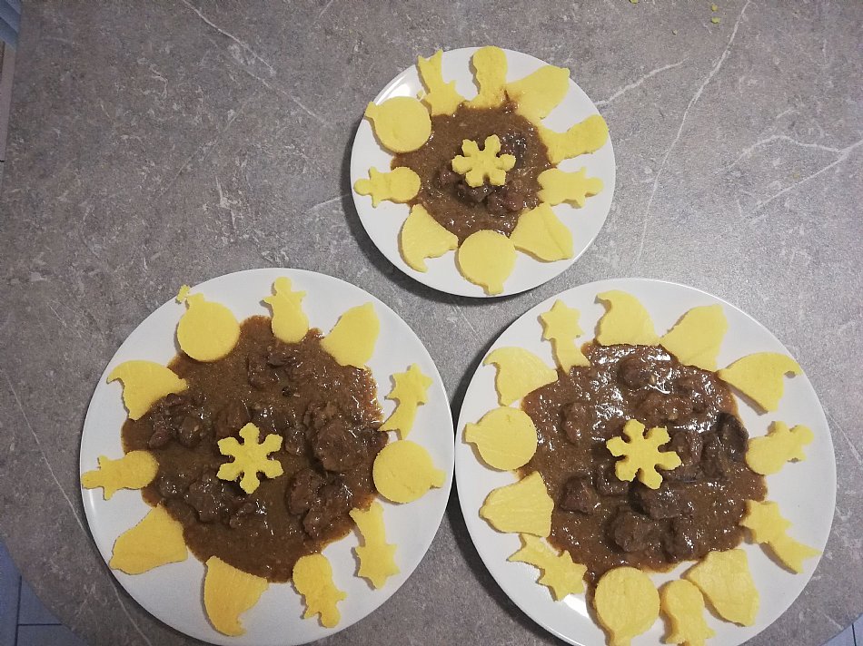 Divjačinski golaž iz divjega zajca v jušnih skodelicah