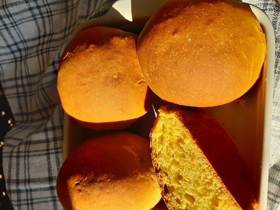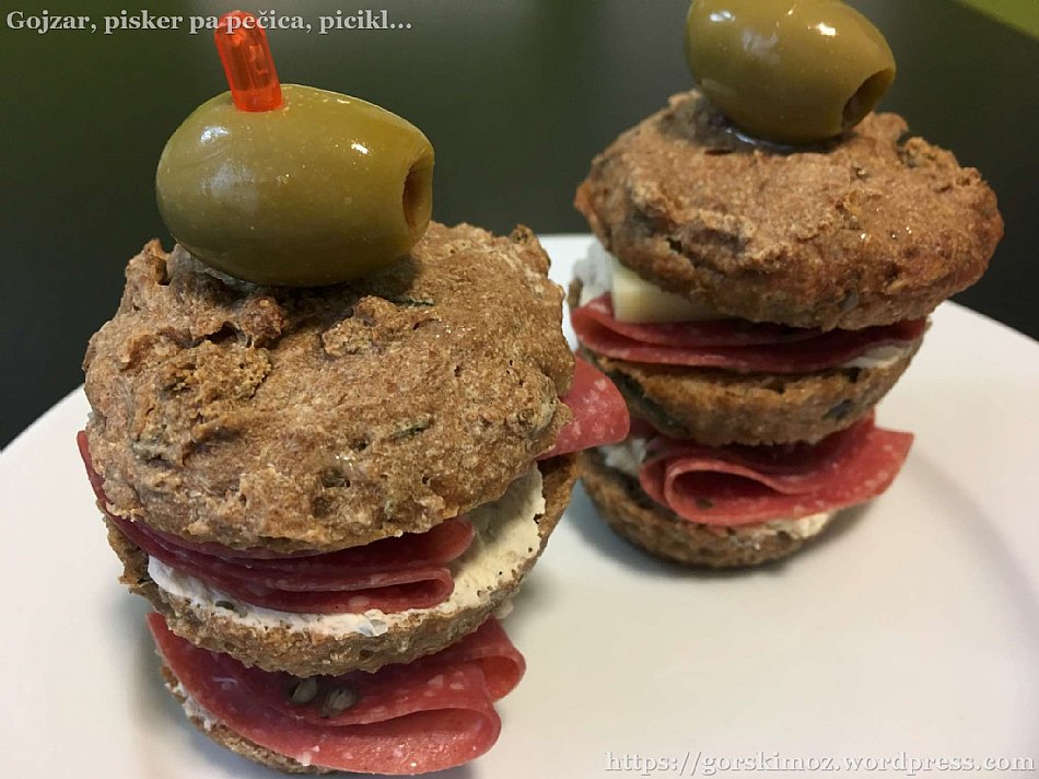 Kruhki sconi s čedarjem, bučnim namazom in kuhanim pršutom