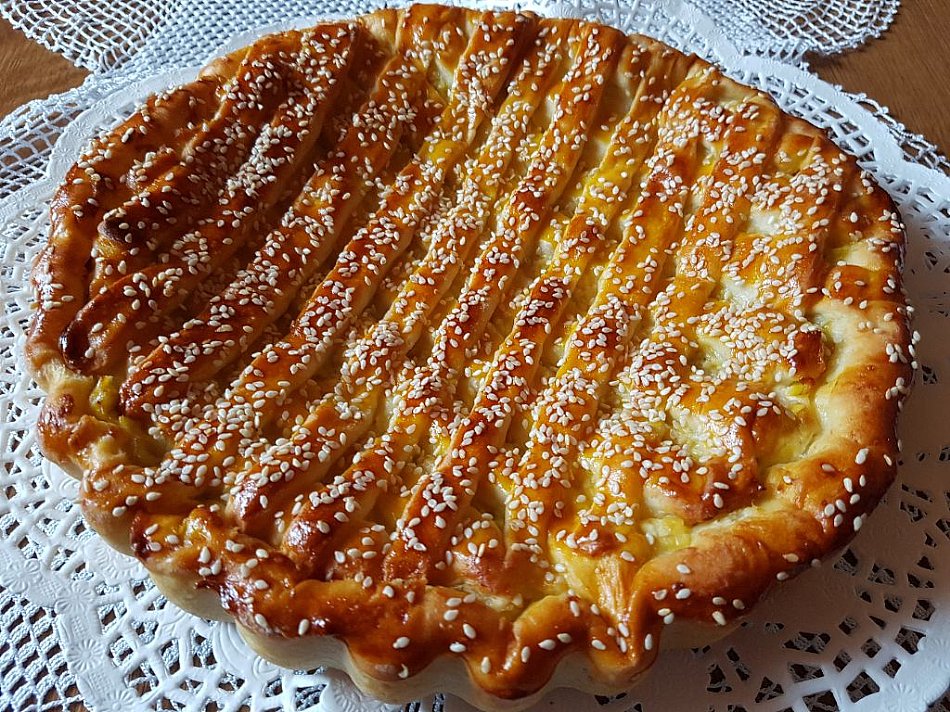 Zelenjavna pita s papriko, korenjem in bučko v ponvi