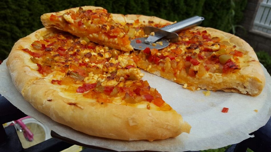 Zelenjavna pita s papriko, korenjem in bučko v ponvi