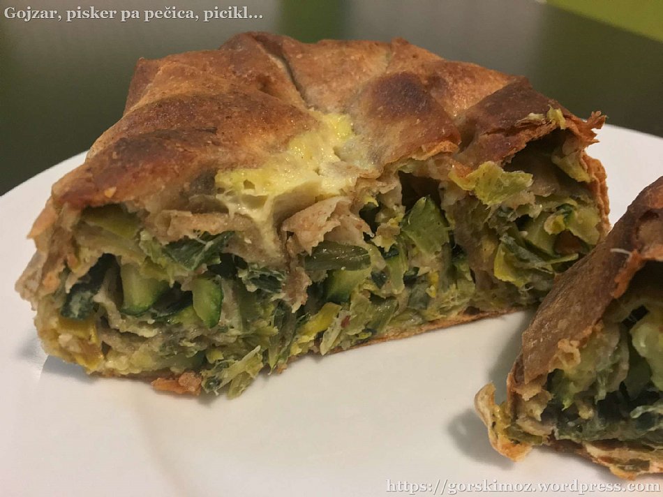 Zelenjavna pita s papriko, korenjem in bučko v ponvi