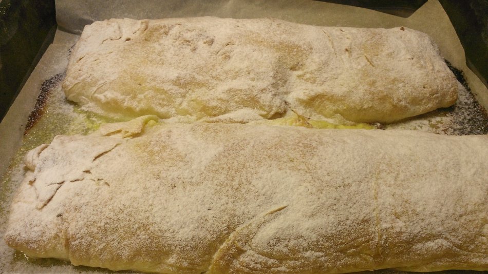 Jabolčno - skutin štrudelj z dodatkom banan