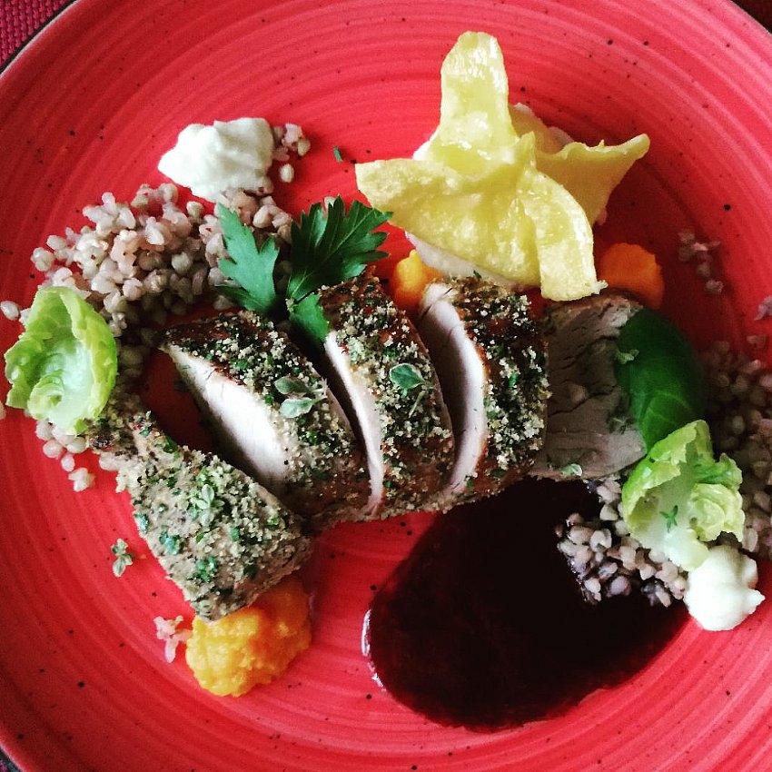 Svinjska ribica s suhimi slivami in omako iz suhih sliv