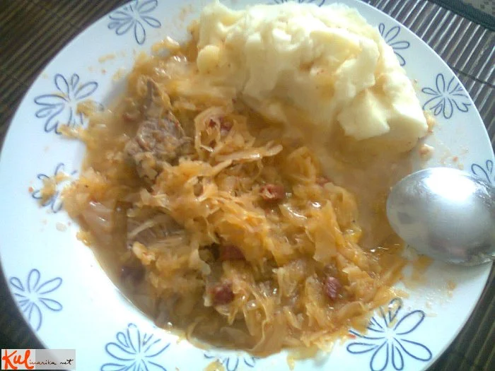 Na masti najprej prepražimo sladkor, da porjavi, dodamo prekajeno bunko, na koščke narezano, popražimo, dodamo na drobno narezano čebulo in česen. Ko česen zadiši, dodamo zelje, mezgo, začinimo s poprom, kumino, muškatnim oreščkom. Solimo, dušimo in po kratkem dušenju zalijemo z belim vinom in juho. Še malo dušimo, da tekočina izpari, nato poprašimo z 1 malo žličko ostre moke in še malo prepražimo. Zalijemo z govejo juho, toliko, da ni preredko. Pred koncem kuhanja dodamo narezano govedino in še malo kuhamo, da se okusi prepojijo.