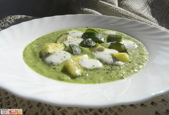 Narežemo čebulo in bučke. V kozici segrejemo olje in maslo, da se spenita. Dodamo čebulo in na nizki temperaturi pet minut dušimo, da se zmehča, vendar ne porumeni. Večkrat premešamo. Dodamo bučke, origano, posolimo in popopramo. Na srednji temperaturi dušimo 10 minut, večkrat premešamo. Prilijemo jušno osnovo in med mešanjem zavremo. Temperaturo znižamo, posodo na pol pokrijemo in kuhamo 30 minut. Dodamo na kocke narezan sir in mešamo, dokler se ne stopi. Juho pretlačimo ali zmeljemo. Nato dodamo smetano in med mešanjem segrevamo na nizki temperaturi, da se juha segreje, vendar ne zavre.