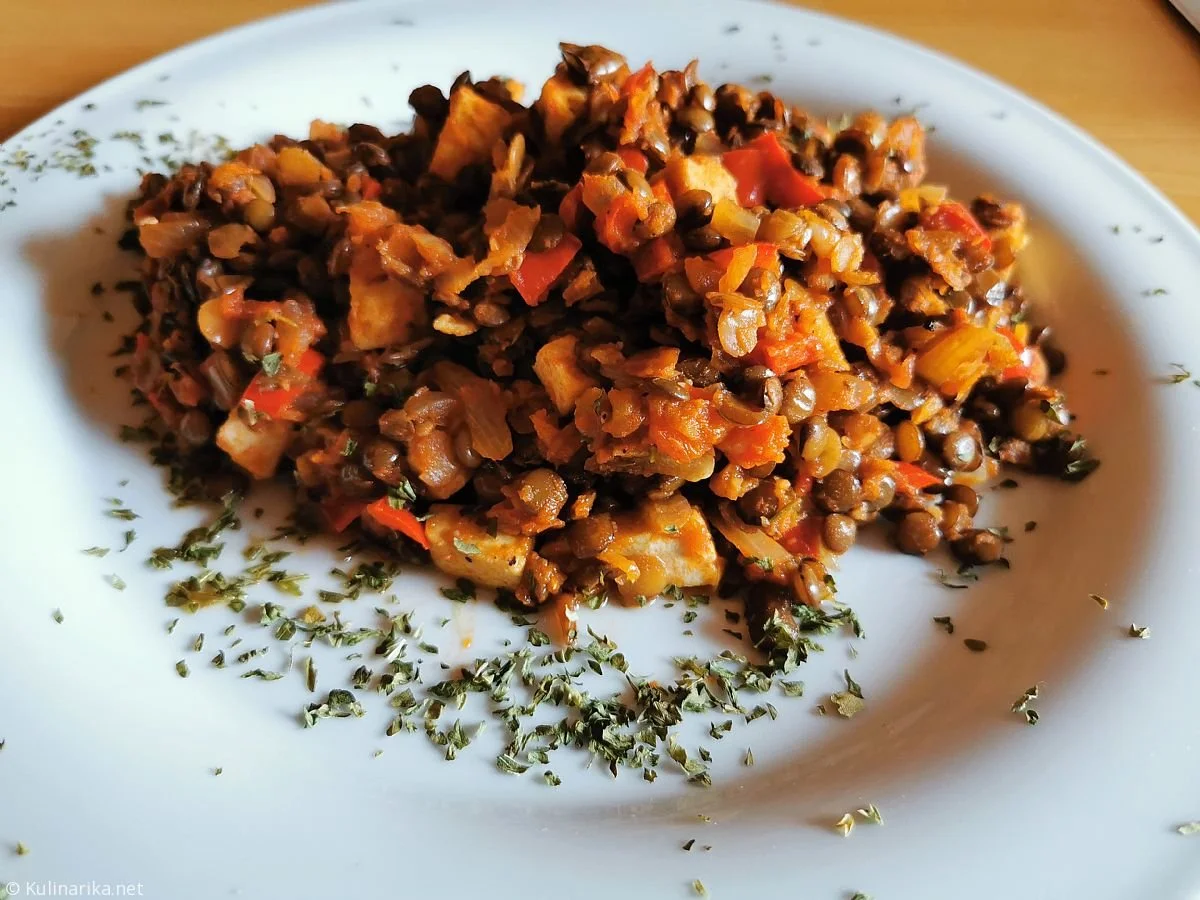 Ko je leča kuhana, lonec odstavimo z ognja, previdno vmešamo tofu in počakamo nekaj minut, da se tofujeve kocke dobro napojijo.
