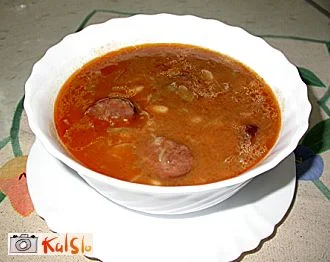 Skuhamo kranjsko klobaso, (za boljši okus jo lahko skuhamo v jušni zelenjavi). Na masti prepražimo nalistano čebulo in na drobno narezano papriko. Zelo malo posolimo. Pražimo toliko časa, da se dobro zmehča in razpusti. Dodamo feferon. Potresemo z mleto papriko. Premešamo. Naredimo svetlo prežganje in dodamo prepraženi čebuli in papriki. Dodamo na koleščke narezano kranjsko klobaso. Premešamo. Zalijemo z vodo v kateri se je kuhala klobasa do željene gostote.