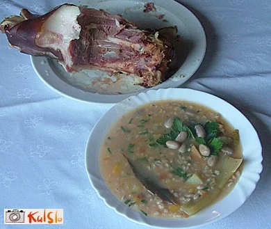 No, mene pa ne spominja na stare čase. Fižol iz pločevinke in argo kocka, halo? Če se le da, jaz v ričet dodam že zelen fižol (ne stročji ampak oluščen fižol, ki še ni do konca zrel).