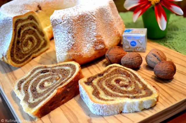 Orehovi štruklji z jabolčnim sorbetom in cimetom