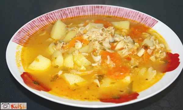 juha s svinjskimi želodčki, krompirjem in korenčkom