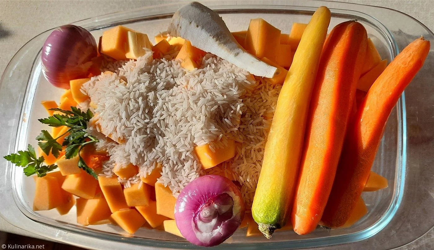 Olupimo zelenjavo in jo narežemo na kocke. Vse sestavine damo v lonec, in jih zalijemo z vodo (cca. liter pa pol vode). Ko zavre, pustimo, da se kuha, dokler korenje ne postane mehko. S paličnim mešalnikom kuhano zelenjavo spasiramo in juho postrežemo.