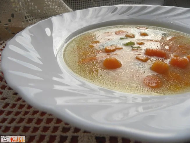 Maslo razpustimo na zmernem ognju, dodamo nariban korenček, če bomo gostili z zdrobom, dodamo tudi zdrob, prepražimo, zalijemo z vodo, dodamo začimbe, na koncu vlijemo razžvrkljano jajce.