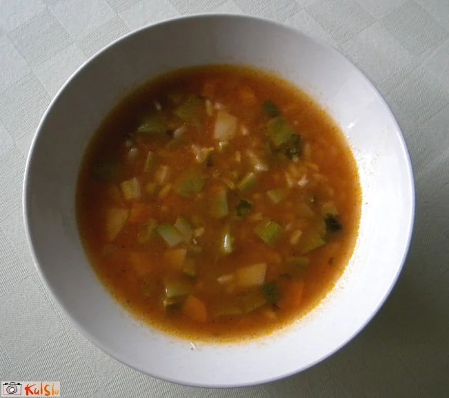 Jaz delam isto, le brez riža, včasih dodam drobcene testenine. Ravno danes bo na jedilniku. Dodajam pa zelenjavo po trenutnem dosegu.