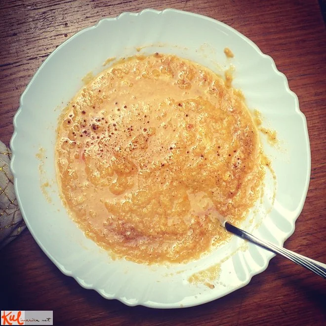 Na koncu v posodici stepemo dve jajci (lahko tudi več) in jih z metlico vmešamo v juho.