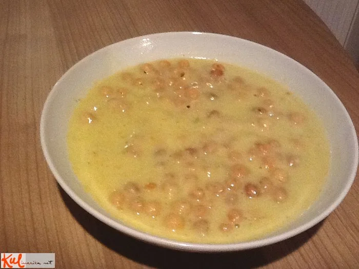 2. Juho zmešamo s paličnim mešalnikom, dodamo mleko in ponovno zavremo. Z malo moke, pomešane z žlico vode ali mleka, zgostimo do želene gostote.