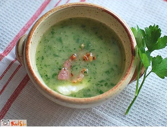Peteršiljeva juha s pinjolami in slanino MMhitro pripravljena peteršiljeva juha, ki je kremna tudi brez smetane