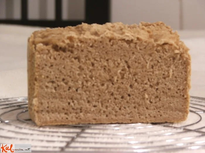 Kruh je neverjetno rahel, četudi je narejen samo iz ržene moke in pečen v kruhomatu.