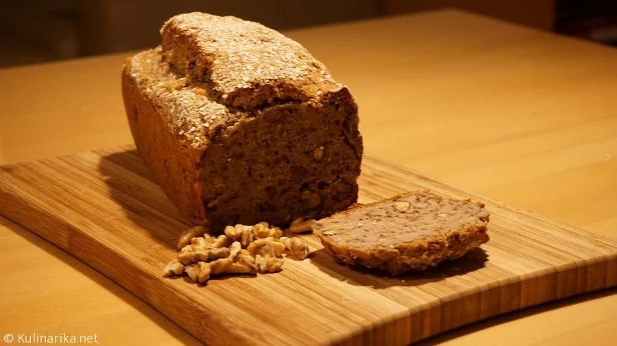 Ajdov kruh z orehi brez glutenapreprost kruh, narejen s pecilnim praškom namesto kvasa