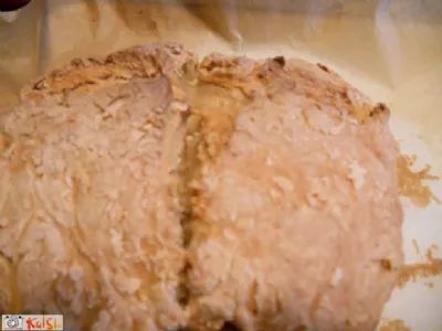 Jogurt in vodo zmešamo in zlijemo na moko. Z vilicami premešamo, da dobimo grudasto maso. Na hitro oblikujemo hlebček in ga postavimo v pekač. Z nožem zarežemo na hlebčku globok križ. Postavimo v pečico in pečemo 10 minut na največji vročini, potem temperaturo zmanjšamo na 200 stopinj in pečemo še 40 minut .