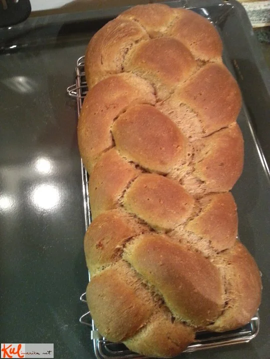 Vsak del oblikujemo v dolg svaljek, svaljke prestavimo na pekač, obložen s peki papirjem in spletemo bodisi običajno, bodisi širšo kito. Pokrito vzhajamo 30-40 minut na sobni temperaturi.