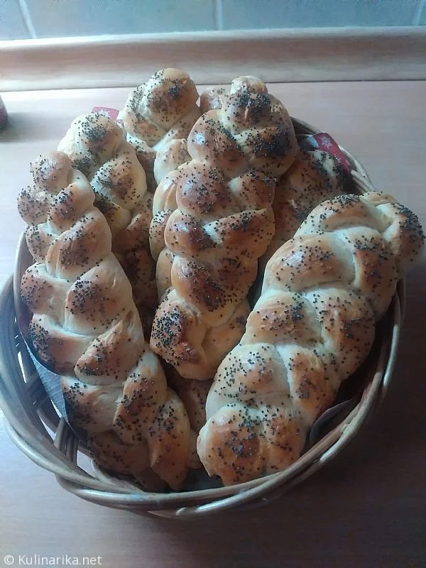 Margarino, sladkor in vanilijev sladkor stopimo v mleku. Naredimo kvasec. V moko zmešamo žličko pecilnega praška, dodamo kvas, raztopljeno margarino v mleku in sol. Zamesimo testo, vzhajamo in oblikujemo makovke (glej slike). Pomočimo jih v razžvrkljano jajce in v mak. Pečemo 20 minut pri 180 stopinjah.