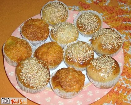 Sestavine damo v navedenem vrstnem redu v kruhomat in zamesimo testo (seveda pa ga lahko zamesimo tudi na klasičen način in pustimo vzhajati). Testo razrežemo na 24 koščkov. Vsak košček med dlanmi oblikujemo v voljno kroglico in jo položimo v model za muffine. Premažemo z jajcem in posujemo s sirom, sezamom, makom ali semeni. Pustimo vzhajati še kakšnih 15 minut. Pečemo pri 200 stopinjah 20 minut.