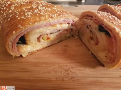 kruhova rolada s šunko, olivami in rozinami