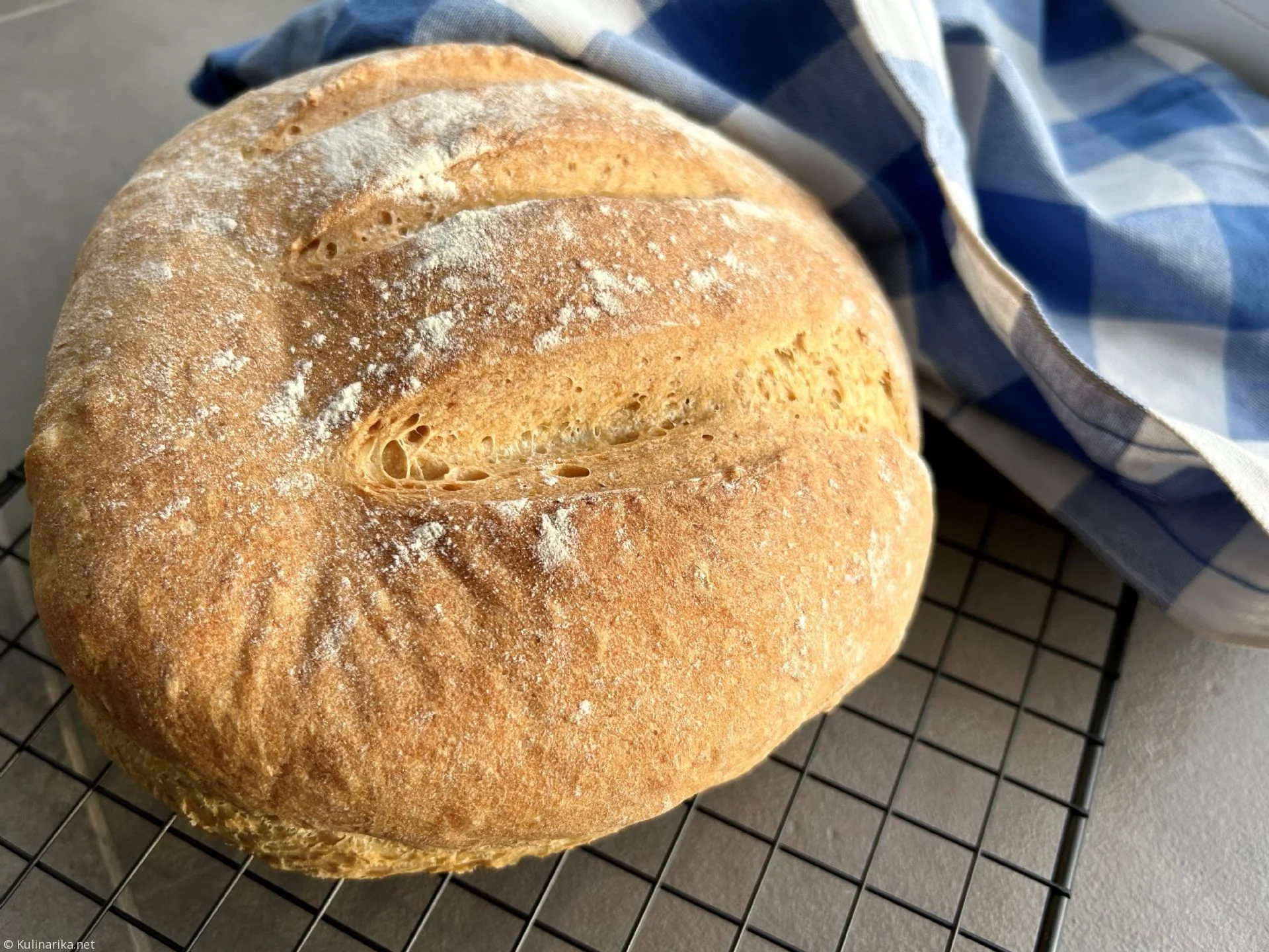 Vzhajan hlebček malenkost pomokamo, poljubno zarežemo in pečemo 15 minut pri 230 °C, nato pa še 35 minut pri 180 °C.