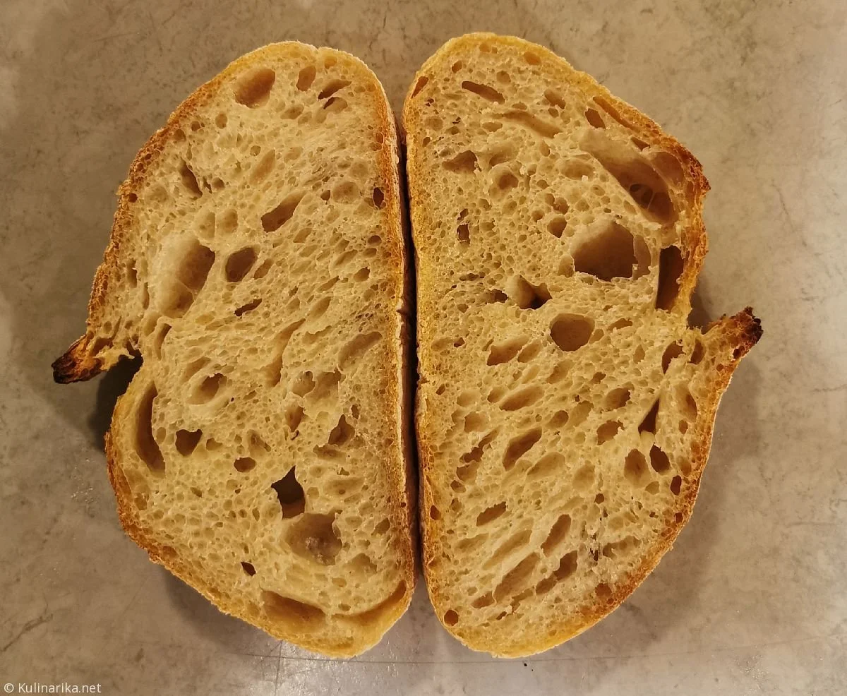 50 g bele pšenične moke in 50 g vode, premešamo in počakamo, da vsebina zrase na