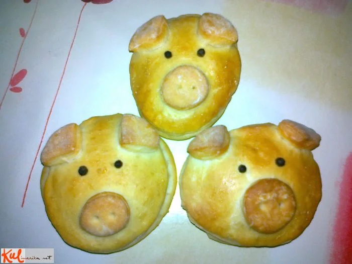 Iz sestavin vgnetemo testo kot za kruh in pustimo vzhajati eno uro. Vzhajano testo pregnetemo in razvaljamo 1 cm debelo. Izrežemo večji krog, ga premažemo z jajcem in nanj položimo manjši krog za rilec in na njem odtisnemo dve luknjici. Izrežemo 2 trikotnika za ušesa, ki ju pritrdimo na večji krog. Za oči uporabimo dve rozini. Nato še celega premažemo z jajcem in potresemo z makom ali sezamom ter spečemo, da lepo zarumeni.