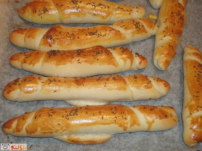 Premažemo jih z rumenjakom, posujemo s kumino in pečemo na 220 stopinjah 10 do 12 minut.