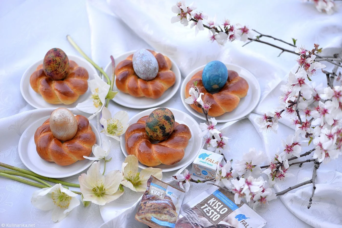 Vzhajano testo pregnetemo in razdelimo na tri dele, nato še vsakega na pet delov; iz vsakega spletemo en venček oziroma velikonočno gnezdece.