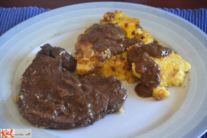 Postrežemo s poljubno prilogo: rulado iz palačink ali krompirjevo rulada z jajčno omleto, skutnimi štruklji, zeliščno polento ...