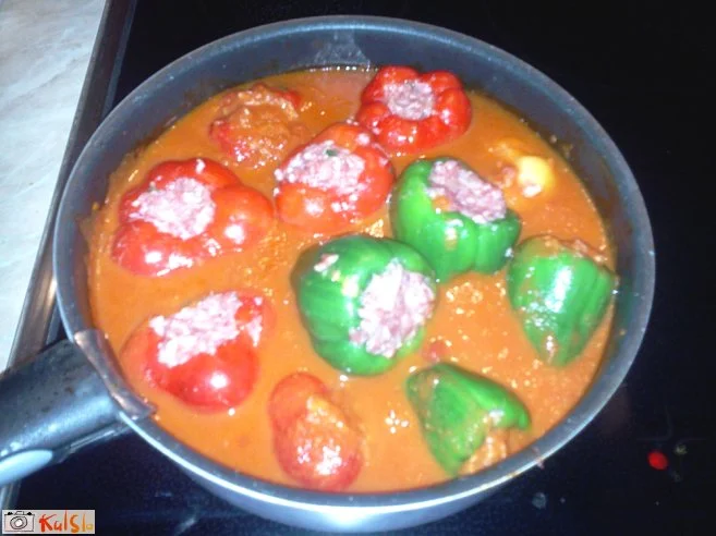 Z maso napolnimo paprike do vrha in jih položimo v omako. Nato kuhamo še dobro uro in okusna jed bo pripravljena.