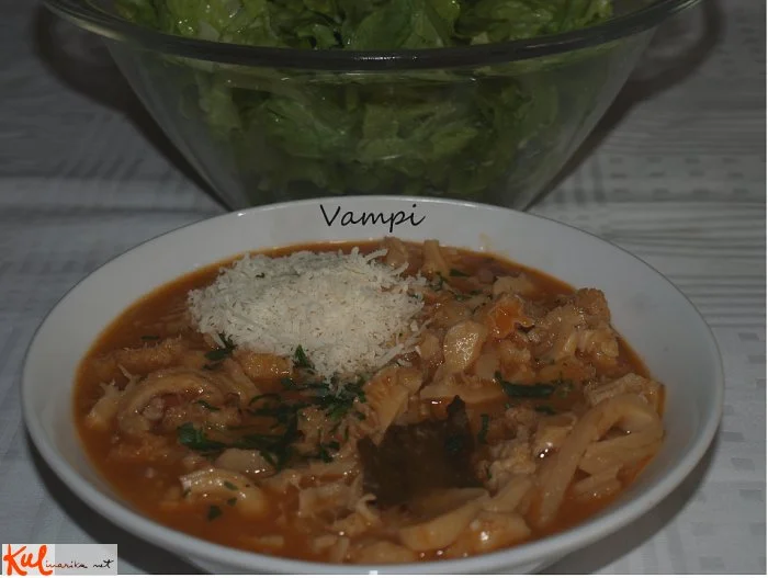 Jaz sem jih doslej sicer delala v obratnem vrstnem redu - na čebulo najprej vampe in potem pražila, ter kasneje vse ostalo, a je tole prav odlično. Kuhala sem jih eno uro in so bili ravno prav mehki. ![]()