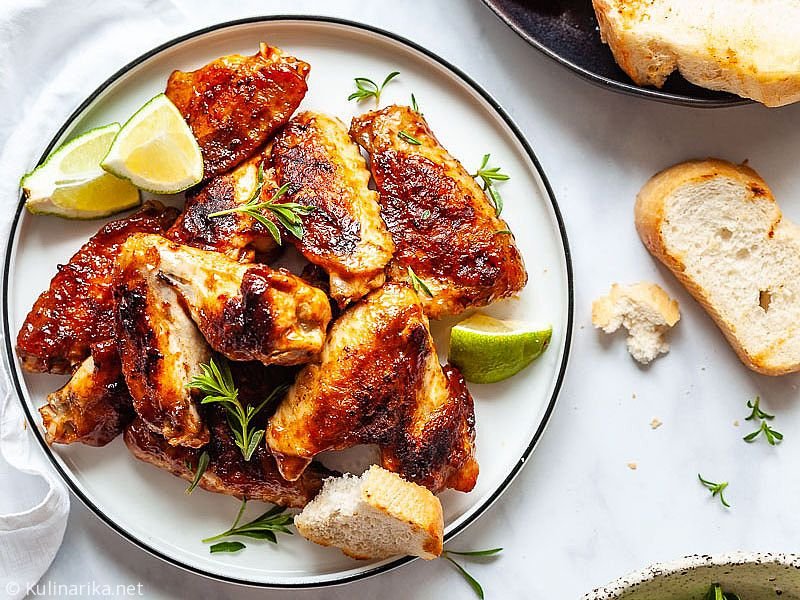 6. Pečene perutničke prestavimo na servirni krožnik ter postrežemo s paradižnikovo solato in svežo žemljo.