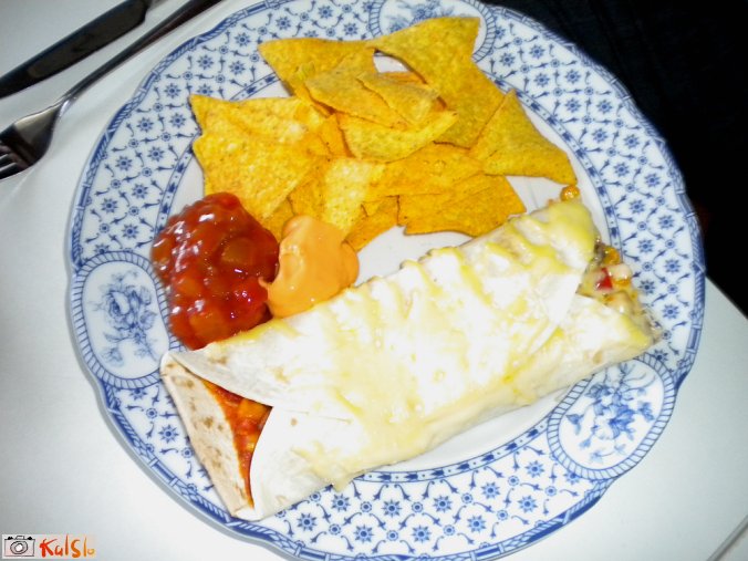 Piščančje prsi narežemo na majhne kocke in jih popražimo na čebuli. Dodamo na kocke narezano vso zelenjavo, na koncu damo še koruzo in fižol. Ko se vse to kuha, zelenjava spusti veliko vode, zato čim manj zalivamo z vodo. Ko je zelenjava kuhana, ali še čvrsta, kakor je komu všeč, zmešamo se mešanico za čili con carne in jo dodamo v posodo. Naj vre toliko časa, da se mešanica zgosti. Nadevamo tortilje, ki smo jih prej segreli v ponvi in zlagamo v pekač. Potresemo z naribanim sirom in postavimo v pečico samo toliko, da se sir stopi in malo zapeče.