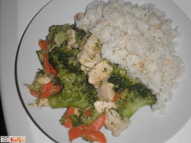 Meso narežemo na koščke ter z malo vode na zmernem ognju podušimo za 5 minut, nakar dodamo narezano korenje in solimo, čez še 5 minut dodamo cvetke brokolija. Nato primešamo moko, ki smo jo prepražili v suhi ponvi in razredčili z malo vode ter masla. Jed dušimo še 10 do 15 minut. Postrežemo z na drobno narezanim peteršiljem, prilogo po izbiri in rezino limone.
