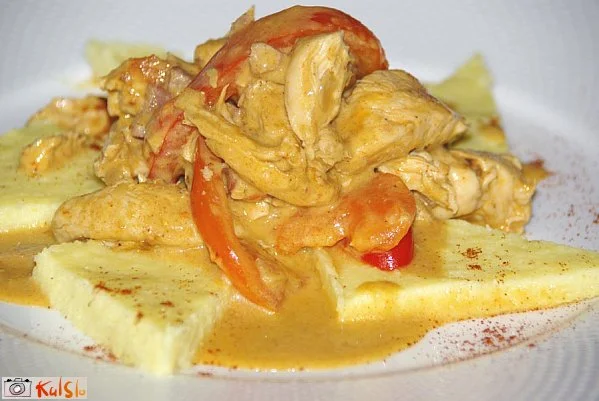 Na žlici olja dušimo čebulo, kakšnih 5 minut. Dodamo na drobno nasekljano vratovino in dušimo nadaljnjih 10 minut. Dodamo piščančje prsi in papriko, oboje narezano na dolge lističe. Ko spremenijo barvo, dodamo moko in papriko, premešamo. Dodamo žlico paradižnikove mezge in zalijemo z vinom in juho (ali vodo). Ko je piščanec skoraj kuhan, dodamo še smetano ter sol in poper po okusu.
