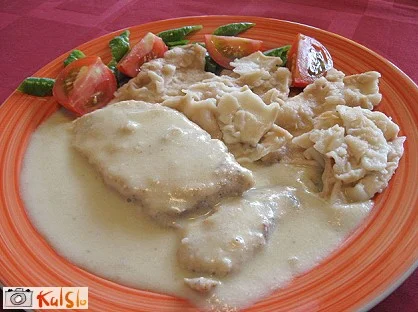 Zrezke narežemo, potolčemo, jih posolimo in popramo, vendar samo malo. Posebej v ponvi segrejemo olje, na njem opečemo zrezke. Ko so lepo zlato zapečeni, jih preložimo v drugo kozico in jih pokrijemo, da so na toplem. Na preostali maščobi prepražimo malo moke in zalijemo z juho. Ko zavre, dodamo sladko smetano in nazadnje še sveže mlete arašide. Po dveh minutah dodamo še zrezke in počakamo, da vse še nekoliko prevre. Nato jih serviramo na ogretem krožniku, zraven postrežemo kuhane njoke. Pa dober tek!