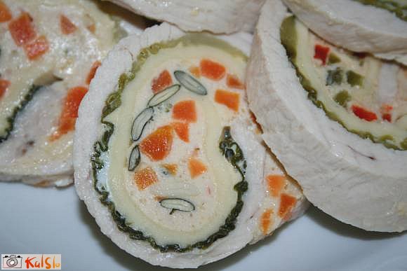 piščančje prsi narežemo in damo v sekljalnik. Dodamo prepraženo čebulo in česen, sol, poper in jajca. Vse dobro zmeljemo. List blitve ali ohrovta v vodi blanširamo. Puranji zrezek enakomerno potolčemo in poljubno polnimo s piščančjim nadevom, ki ga lahko po želji izpopolnimo s svežo zelenjavo in tako dosežemo še bolj vabljiv izgled te jedi.