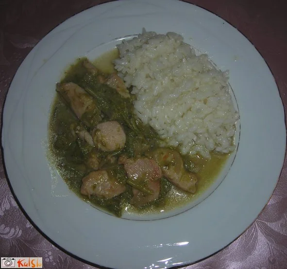 Meso narežemo na trakove, ga začinimo in damo na vroče olje, da se popeče in dobi lepo zlato-rjavo barvo. Odstavimo na toplo. V isti posodi prepražimo drobno narezano čebulo ter dodamo šparglje in sesekljan česen. Pražimo naprej in počasi dodajamo vodo. Ko so šparglji zadosti mehki (cca. 20 minut), dodamo jušno kocko, solimo in popramo po okusu. Dodamo vino in še malo pokuhamo. Na koncu dodamo malo sladke smetane.