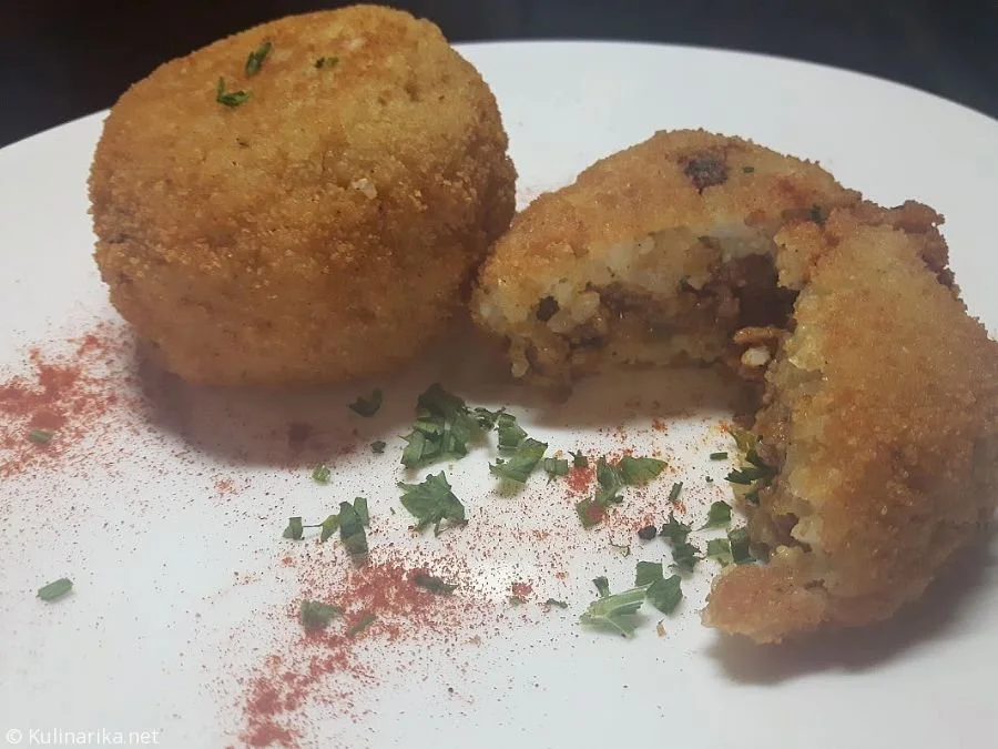 Vsako kroglico povaljamo v drobtinah in do zlato rjave barve ocvremo v olju.