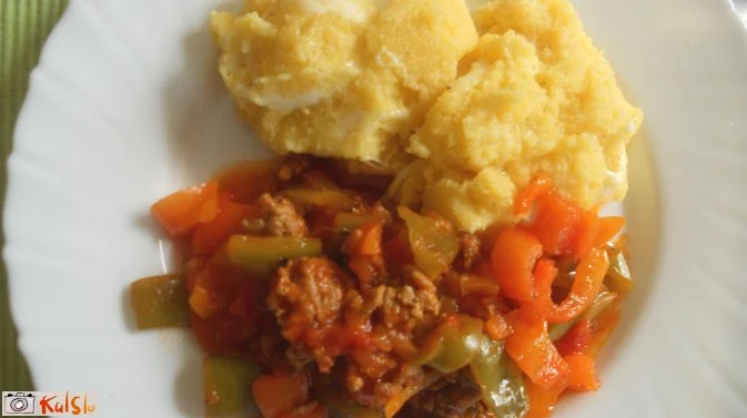 Sesekljano čebulo prepražimo na olivnem olju. Dodamo mleto meso in še nekaj časa pražimo. Dodamo na koščke narezano papriko in mediteranske začimbe, pražimo in potem dušimo. Vmes izdatno zalivamo s pasiranim paradižnikom, kasneje tudi z vodo. Ko je skoraj kuhano, še posolimo in popopramo.